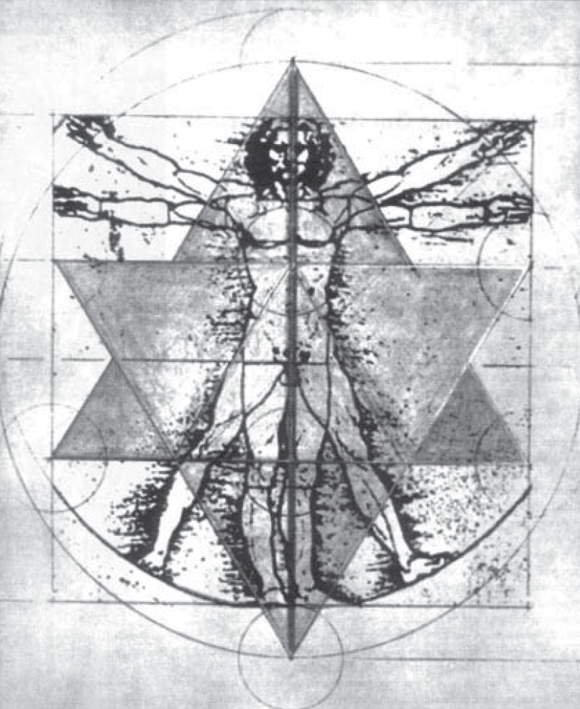The Star Tetrahedron (Merkaba) – This Star Tetrahedron With Leonardo’s Image Behind It Is Going To Become One Of The Most Important Drawings For This Work. What You’re Looking At Is Two-Dimensional, But Think Of It In Three Dimensions. A Star Tetrahedron, Just As Shown Here, Happens To Exist Around EachHuman Body. We’re Going To Spend A Great Deal Of Time To Get You To The Point Where You Can See That You Do Have This Image Around Your Body. Notice Especially That There’s A Tube Running Down The Center Of The Body Through Which We Can Breathe Life-Force Energy, And The Two Apexes At The Top And Bottom Of This Tube Connect The Third Dimension To The Fourth Dimension. You Can Inhale Fourth-Dimensional Prana Directly Through The Tube. You Could Be In A Vacuum, A Total Void, With No Air To Breathe, And Completely Survive If You Could Live The Principles Of This Understanding. As Richard Hoagland Has Shown The United Nations And NASA, We Are Now Beginning To Scientifically Rediscover This Field. Just As It Is Shown Around Leonardo, It Is Also Around Planets, Suns And Even Larger Bodies. This Could Become The Standard Explanation Of How Some Of These Outer Planets Survive. Why? The Planets Are Radiating Off The Surface Far More Energy Than They’re Receiving From The Sun, A Lot More. Where Is It Coming From? With This New Understanding, If Leonardo Were A Planet Instead Of A Person, The Points At The North And South Poles Would Be Bringing In Huge Amounts Of Energy From Another Dimension (Or Dimensions). Planets Literally Exist In More Than One Dimension, And If You Could See The Whole Earth In All Its Glory—The Various Fields And Energies Around A Planet—You’d Be Astounded
